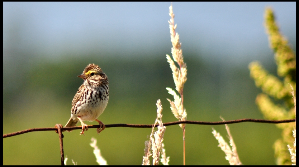 The Savannah Sparrow, a new addition to the footsteps, does its thing upon this fencepost somewhere in Tsawwassen.